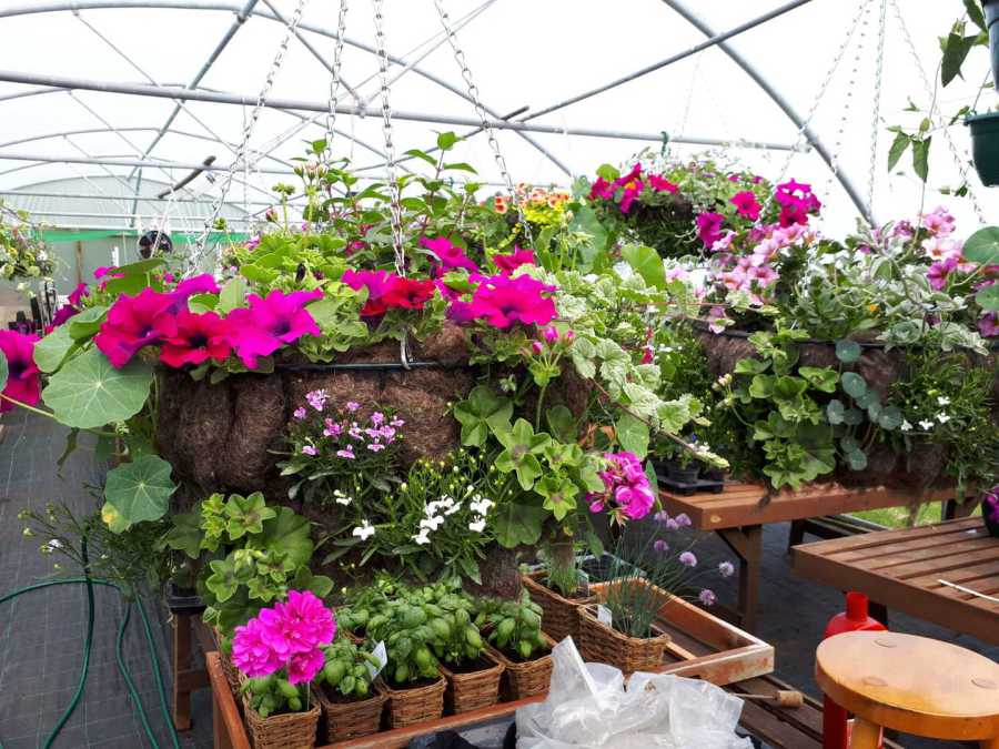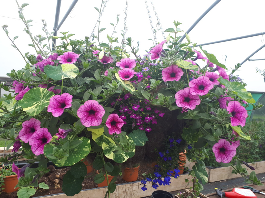 Beautiful Hanging Baskets planted and grown here on the farm to suit all budgets and levels of dedication to their after-care.