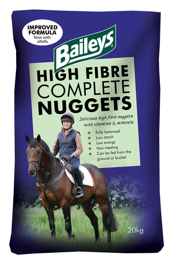 High Fibre Complete Nuggets are chunky, high fibre cubes that are fully balanced with a comprehensive spectrum of vitamins and minerals. They can be fed alongside additional forage sources to provide a natural, fully balanced diet for all horses and ponies or donkeys at rest or in light to moderate levels of work.