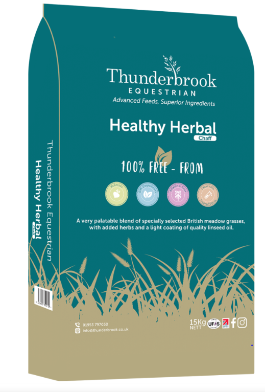 Thunderbrook’s Healthy Herbal Chaff is ideal for mixing with Base Mix or Daily Essentials to encourage your horse to chew and eat his feed more slowly.