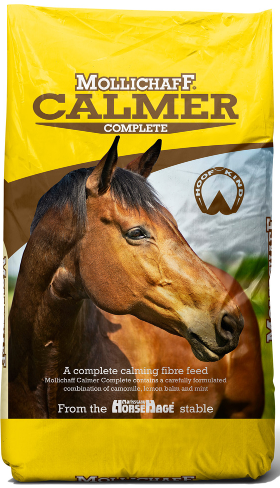 Mollichaff Calmer Complete is a complete fibre feed suitable for horses & ponies prone to nervousness or excitability. It contains a carefully formulated combination of chamomile, lemon balm & mint, as well as elevated levels of magnesium. It is low in sugar & starch and safe to feed to horses & ponies prone to laminitis.