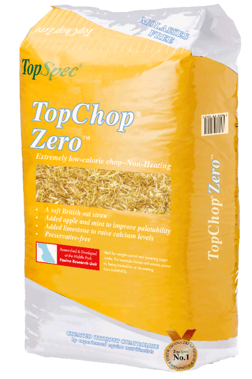 It is designed for horses and ponies that are overweight and need an exceptionally low-calorie source of mature forage. Horses and ponies can pick away steadily at TopChop Zero when they no longer have access to grass or hay or even haylage. By doing this they will ensure a supply of fibre to the microflora in their hindgut during periods when otherwise there would be no forage supply e.g. from late evening until morning stables. This will be of huge benefit to the horse’s digestive health.