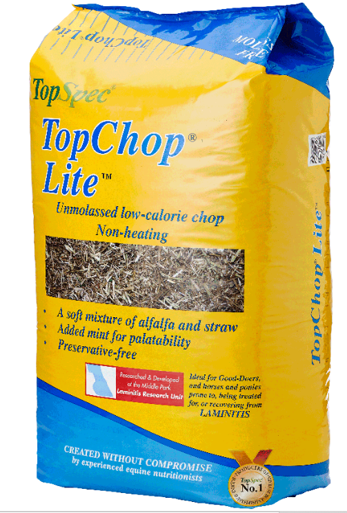 TopChop Lite is of similar nutritional value to average quality hay but contains less sugar. The composition and fine texture of this product make it ideal for horses and ponies prone to, being treated for, and recovering from laminitis. It is suitable for all horses and ponies and perfect for good-doers and others prone to weight gain.