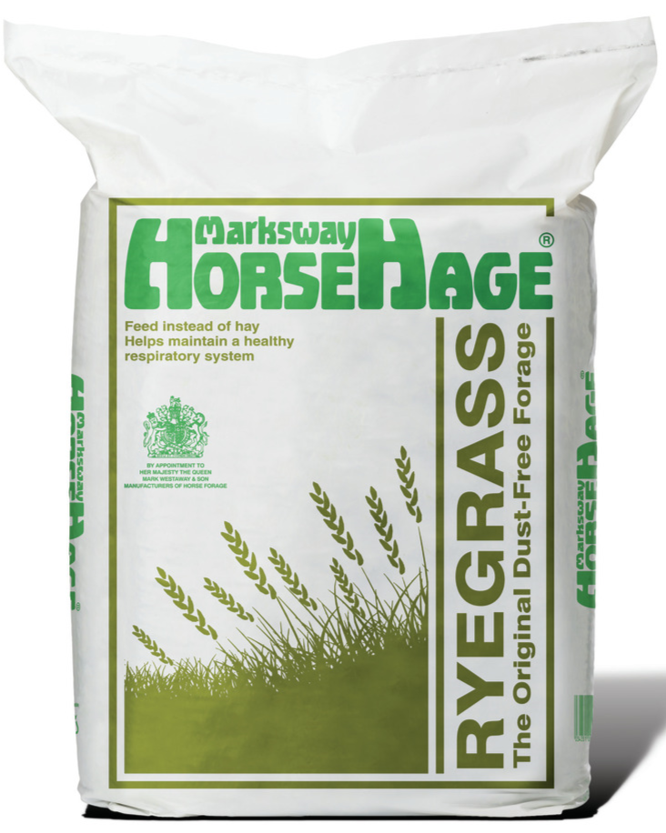 Marksway Ryegrass HorseHage is made from a selection of ryegrasses cut at an earlier stage of growth to provide optimum protein and energy levels. It is suitable for horses in work or for those that need a little more from their forage to improve weight and condition. Ryegrass HorseHage is great for hunters, heavy horses, young stock and breeding stock.