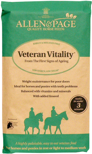 Veteran Vitality has been specially formulated for horses and ponies from the first signs of ageing. Using only the finest Non-GM ingredients, Veteran Vitality provides all the nutritional requirements for optimum health in older horses and ponies. Highly palatable with natural herbs, including Mint, Nettle Dandelion, Garlic, Fenugreek, and contains a live yeast probiotic and prebiotics (FOS & MOS) for healthy digestion. Ideal for: