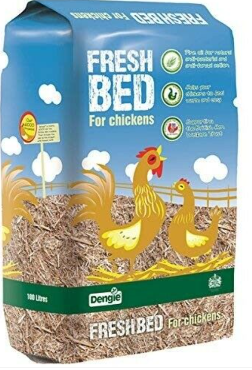 Dengie Fresh Bed for chickens is a chopped straw bedding with pine oil added for its natural anti-bacterial and anti-fungal properties. Developed in association with the British Hen Welfare Trust, Fresh Bed is designed to keep your hens feeling warm and cosy. *Chopped, dust extracted straw bedding ideal for ex-bats in particular *Includes pine oil a natural anti-bacterial and anti-fungal agent *Easy disposal as will compost much quicker than shavings and wood pellets and produces great compost for your veggies!